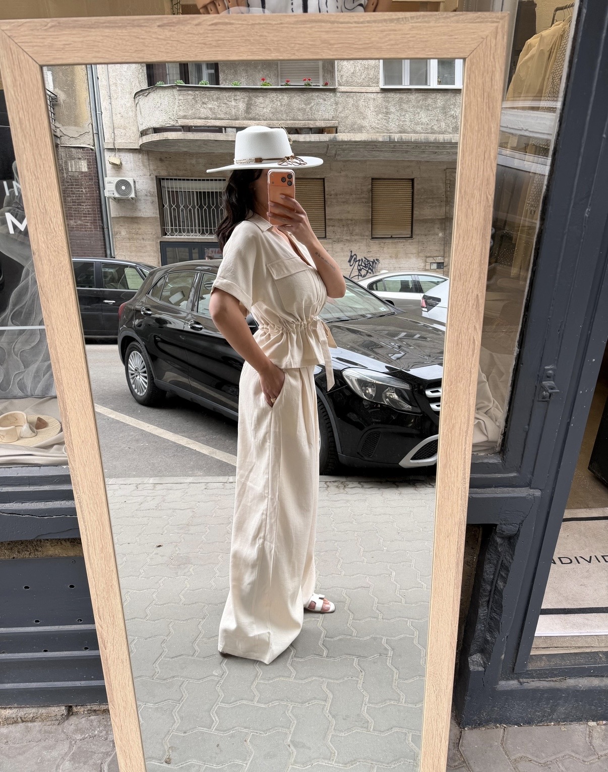 bézs vászon szett övvel s/m